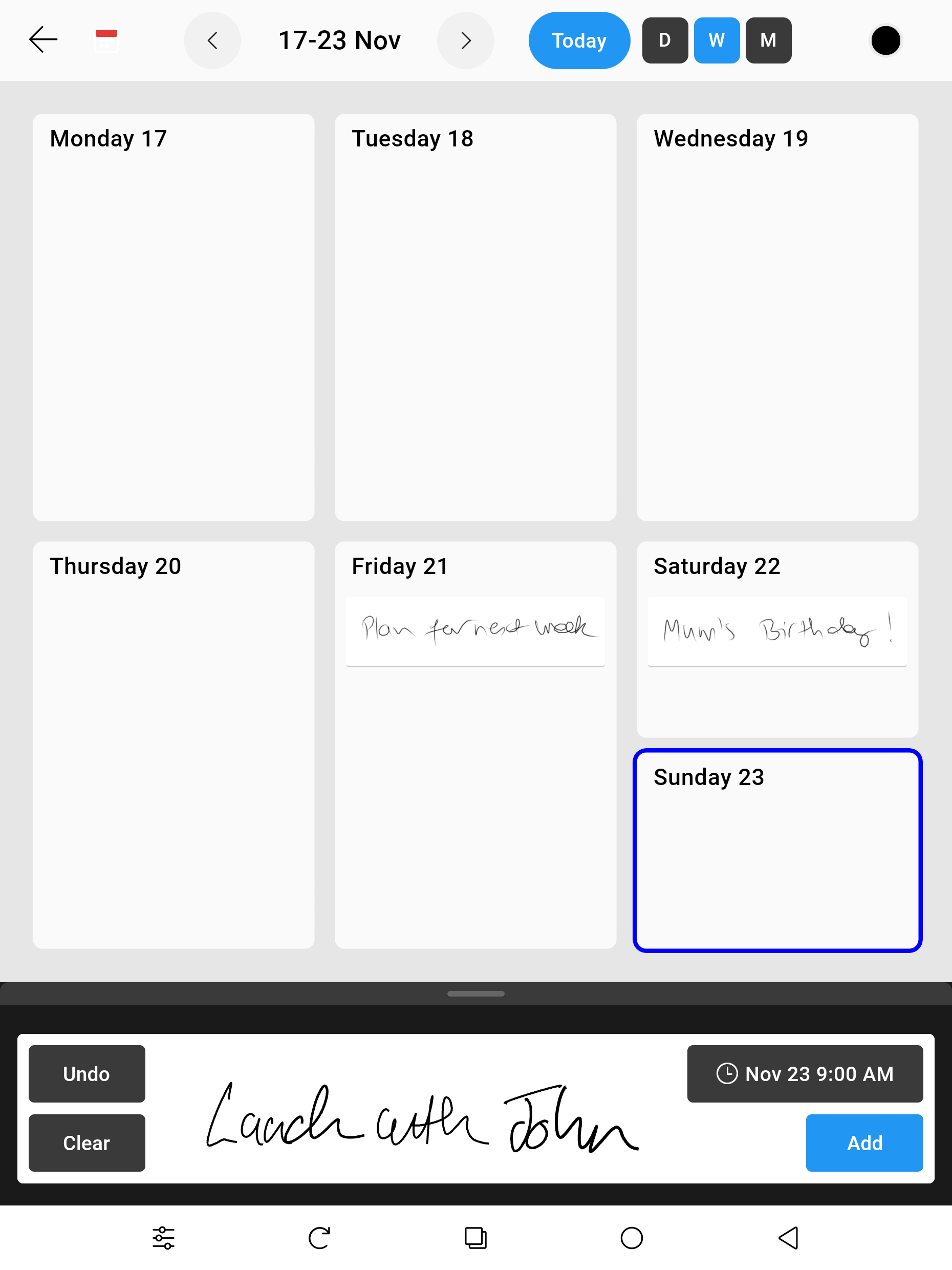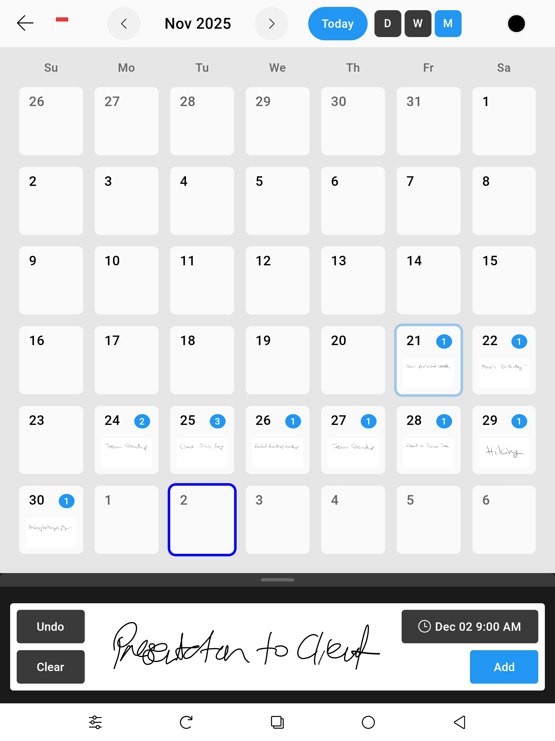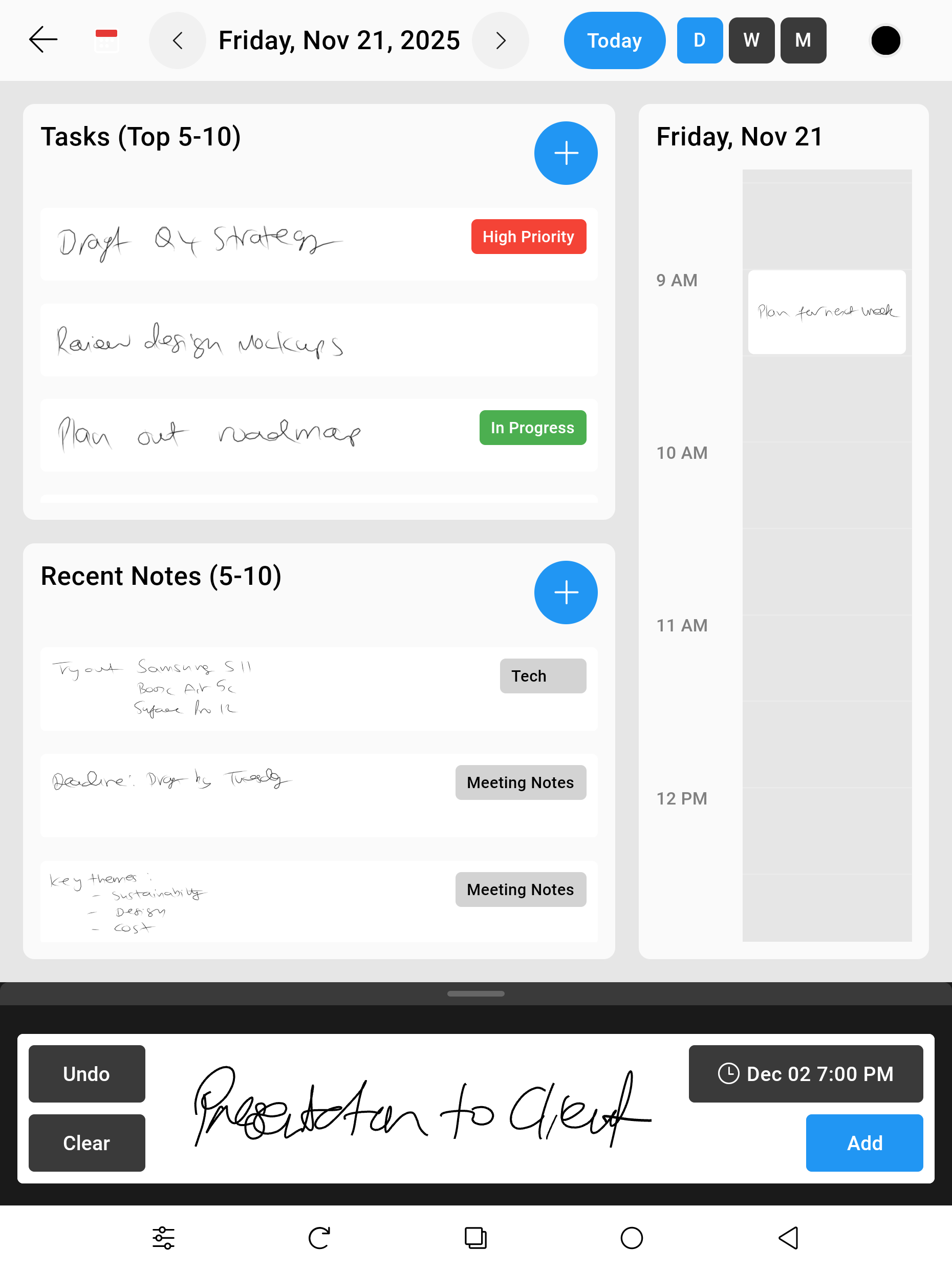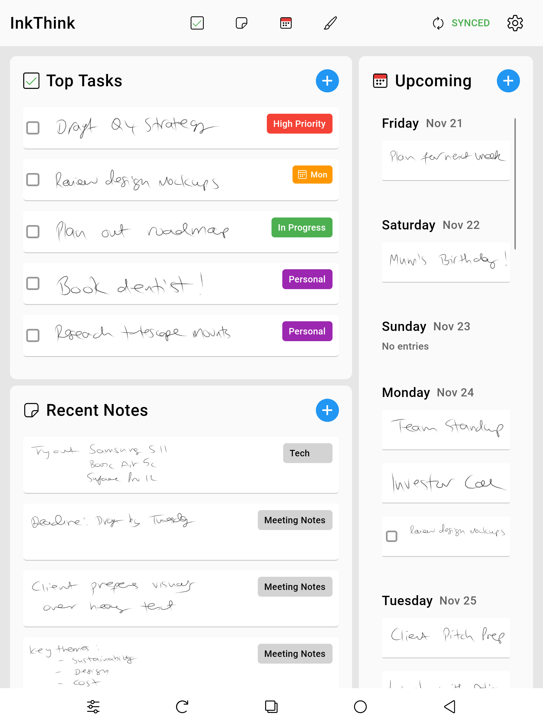 Capture Notes during meetings, scribble on a Calendar with dynamic intelligent ink that redraws into different day, week and month views.