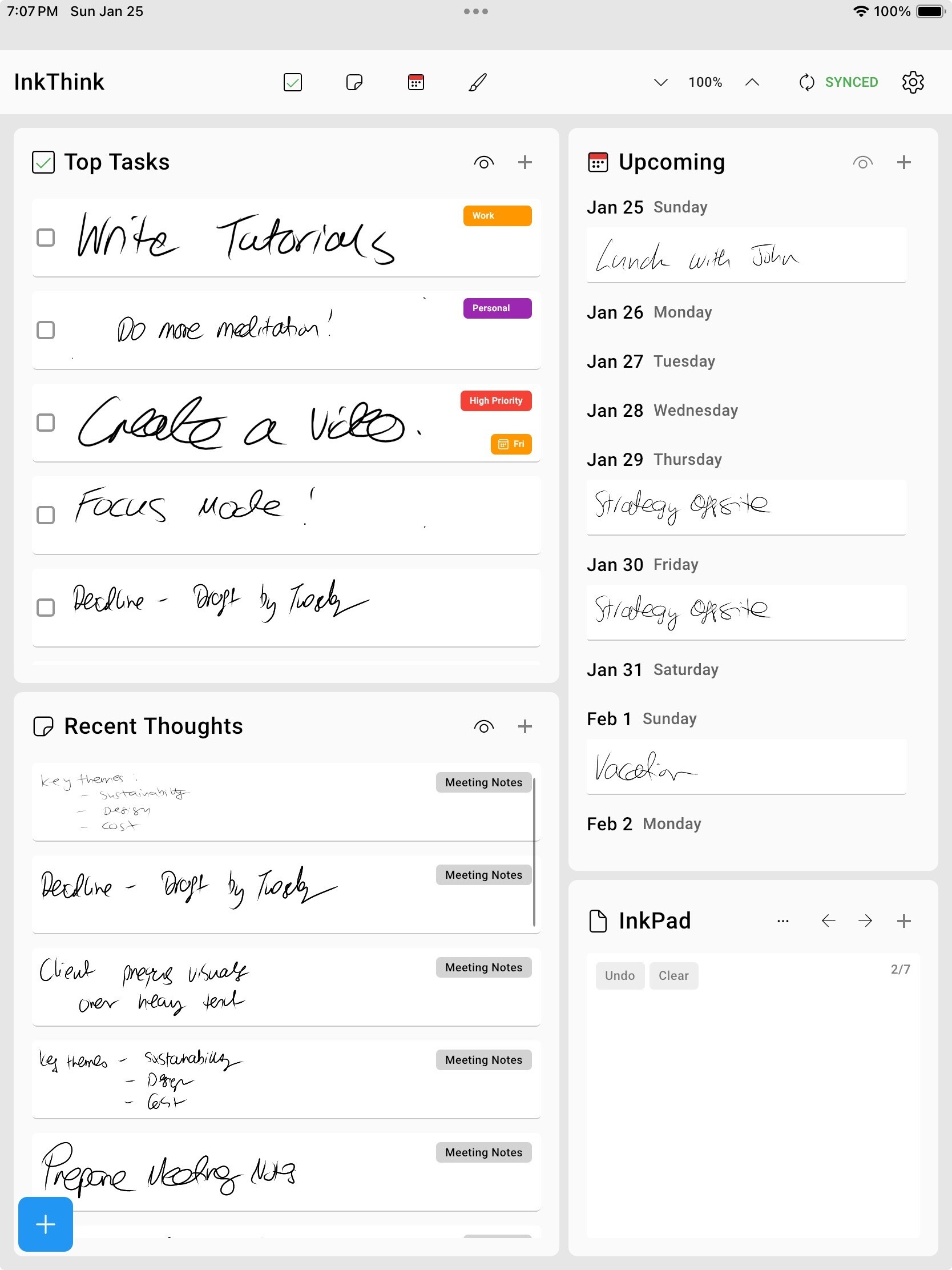 InkThink is a stylus-first productivity suite designed for thinkers, creators, and note-takers who prefer ink over taps. Whether you're sketching out your day, brainstorming ideas, or building a visual mind map, InkThink gives you a fluid, pen-powered canvas to organize your thoughts your way.