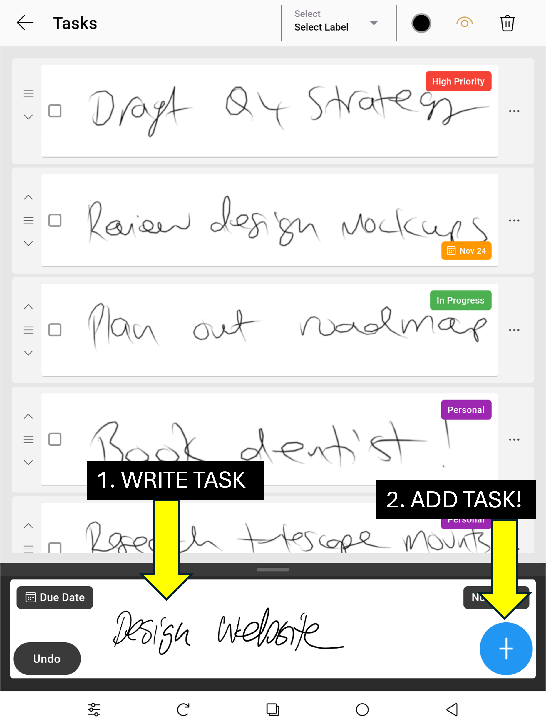 Use your pen enabled tablet to make your handwritten To-Do list which you can keep editing and updating daily.