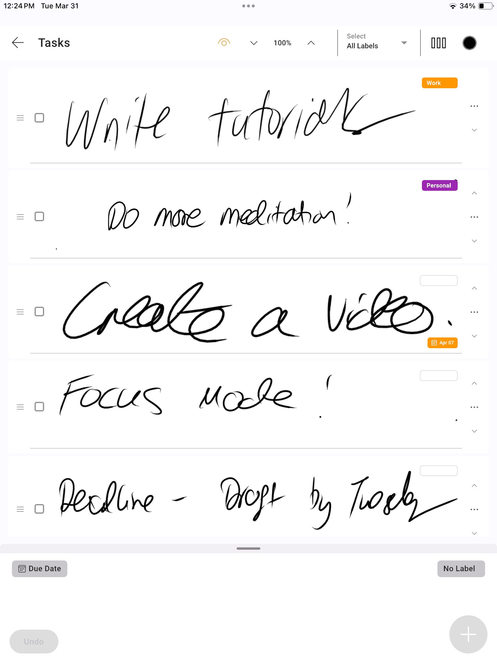 A scrollable, re-orderable handwritten task list — just like the real thing. Sketch your to-do's and rearrange with a flick!