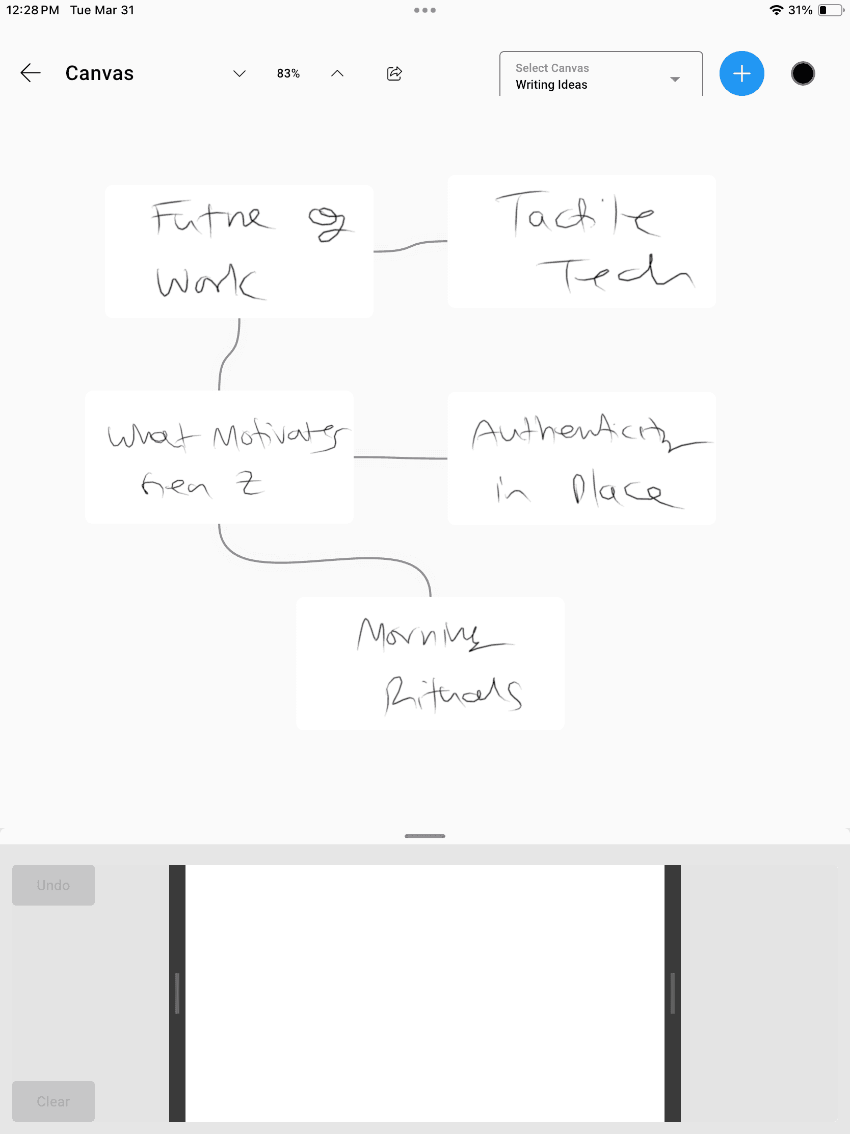 A whiteboard and mind-map canvas to draw out thoughts and ideas — arrange them freely like index cards on a corkboard.
