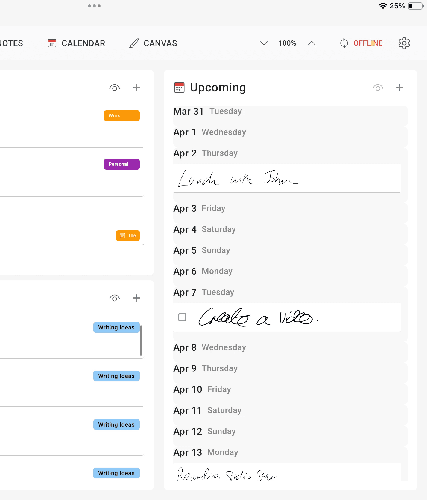 An innovative toolset for creative productivity. Tasks, Notes, Calendar and Canvas — all through an intuitive, stylus-focused interface. No AI, just a seamless collaboration between your mind and your pen.