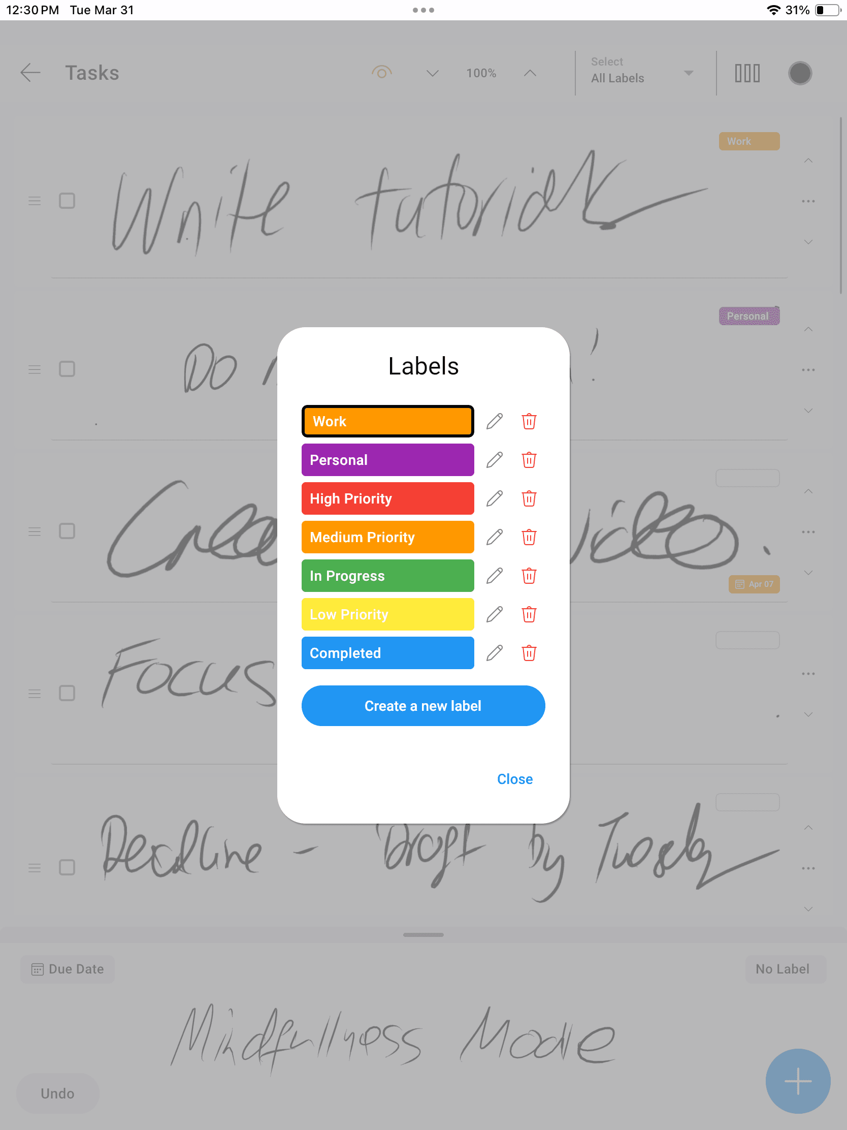 Create and assign labels to your tasks to better view, filter and organise your workload your way.