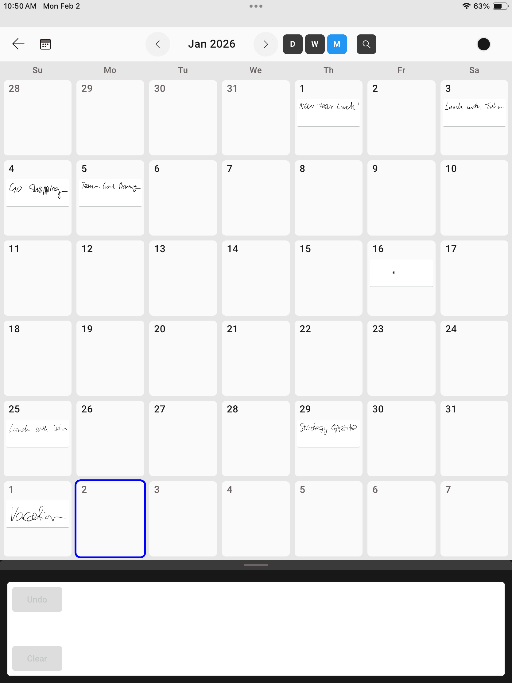 Write into your day — see it your way! Dynamic intelligent ink that redraws into different day, week and month views automatically.